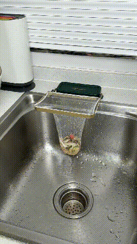 You just need to dry the countertop, attach the triangle rack to the countertop of the kitchen sink with nano double-sided tape, and then fix the mesh bag to the triangle rack.